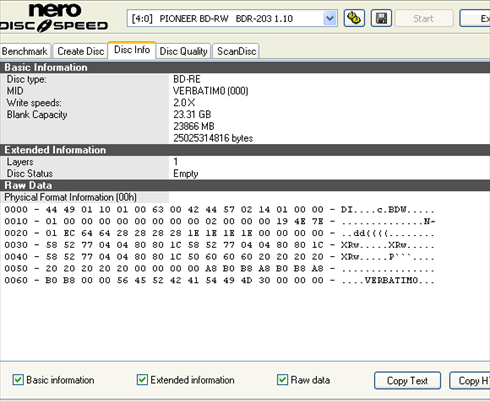 This is another Verbatim BD-RE SL disc (VERBATIM0 (000) for 2x recording.