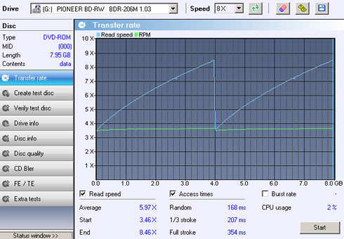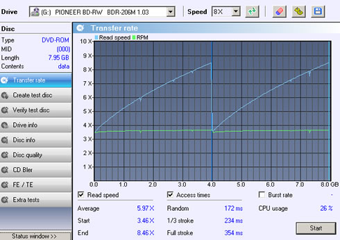 The drive easily read the disc with some minor issues in the end of L0, where is slowed down a bit to resume reading afterwards.