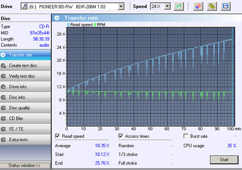 Here is a transfer rate test with an Audio CD. The disc was read at 17.56x: