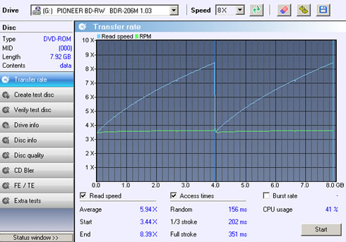 Now let's take a look at how the drive performs with DVD media. This time, a set of SL and DL DVD media was used. The drive is capable of reading at 8x maximum speed for DVD ROM SL and DL.