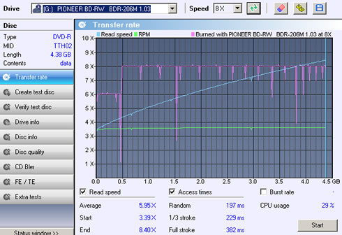 Reading of almost all the discs was completed without read errors. The Pioneer is not the fastest reader around but it will read your discs at speeds matching its specifications.