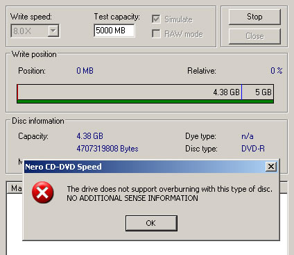 | DVD-RW | TDK (CMCW04) burned at 6x | |