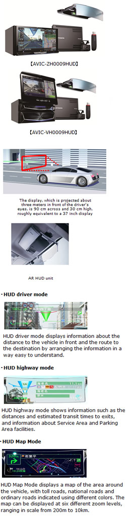 7" wide screen VGA terrestrial digital TV/DVD-V/CD/Bluetooth/USB/SD/tuner with 5.1 channel support, DSP AV all-in-one HDD navigation cruise scouter unit, AR HUD unit set | AVIC-VH0009HUD | Open price | June |
