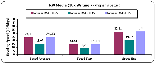 For the RW tests we used Ricoh HS RW media written at 10x speed: