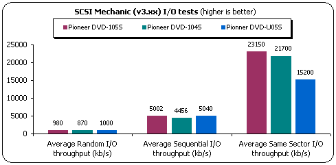 As you can see from the graph above, the DVD-U05S model is very fast model and managed to outperform even the supposed faster Pioneer DVD-105S 16x DVD-ROM in both Average Random and Sequential I/O tests! We think that Pioneer really improved the drive as posted in the press release.