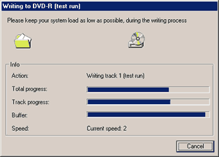 Now just press "Write" and the process will start. We did notice that under WinME, Gear DVD Pro uses all the available computer recourses and it is improssible to do anything else. But even with this problem, we didn't have any coaster or bad burn in all our tests.
