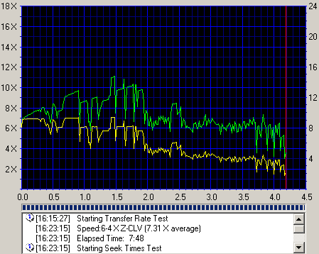 In general, a "perfect" disc should have a smooth reading curve, very low PIE/POE and zero (0) POF error rates. Most times however, even though a disc has very low PIE/POE error rates, the reading curve may not be smooth containing dropoffs. Due to the fact that we overspeed the reading capabilities of the LiteON SOHD-167T, such drops are expected, especially near the outer area of the disc.