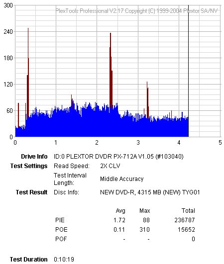 - The Plextor PX-712A with the latest available firmware. For scanning the disc, we used the latest PlexTools version at 2X CLV reading speed, BURST mode, with middle accuracy.