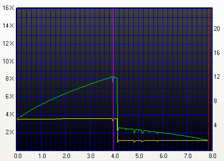The following transfer rate picture comes from the CDVD Benchmark v1.21 transfer rate test.