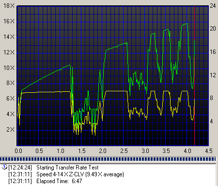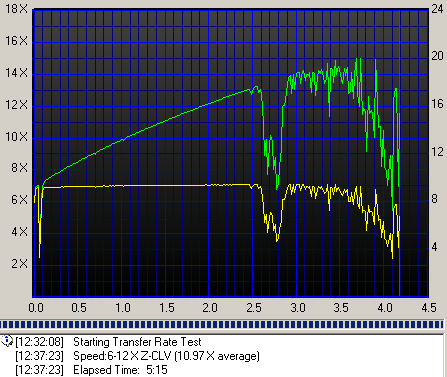 No unreadable media in any of the above cases, but the overall performance isn't the best. Average to bad writing at 16X burning speed with DVD-R media.