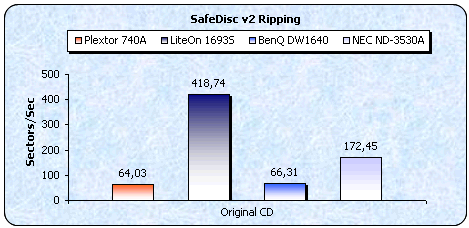 Unfortunately, as already mentioned, the performance of the drive was not that good with SafeDisc protected games and it was only able to rip up to v2.8x.