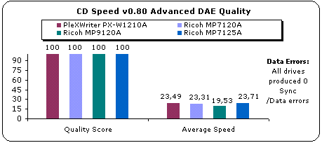 As it seems the Ricoh MP7125A works slightly better with CDR media and gave faster ripping speed (23.7x) reducing the gap with the first PX-W1210A: