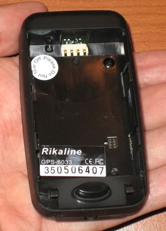 Removing the battery cover we can find some info about the Rikaline GPS-6033: