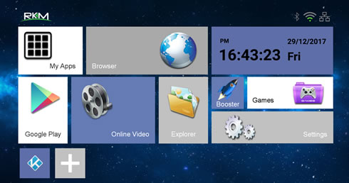 Once the device is pluggged into your TV and boot up, you'll see a possibly already familiar Rikomagic GUI, which is generally easy to use and understand.