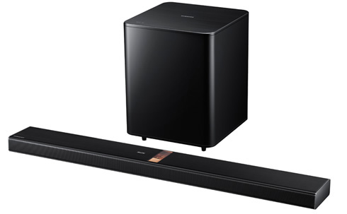 Samsung's HW-H750 Soundbar with wireless subwoofer features a 320W amplifier and combines the sound of analog with the latest digital audio technology. It supports 96k/24bit HD Audio and is compatible with Samsung's roster of Shape Wireless Audio-Multiroom products. The Samsung HW-H750 will be available in the Spring for $799.99