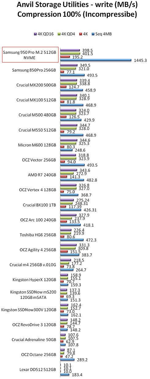 We used the software with the Samsung 950 PRo SSD and tested the drive with 0-fill and 100 % (incompressible data). Not many differences were reported in those benchmarks.