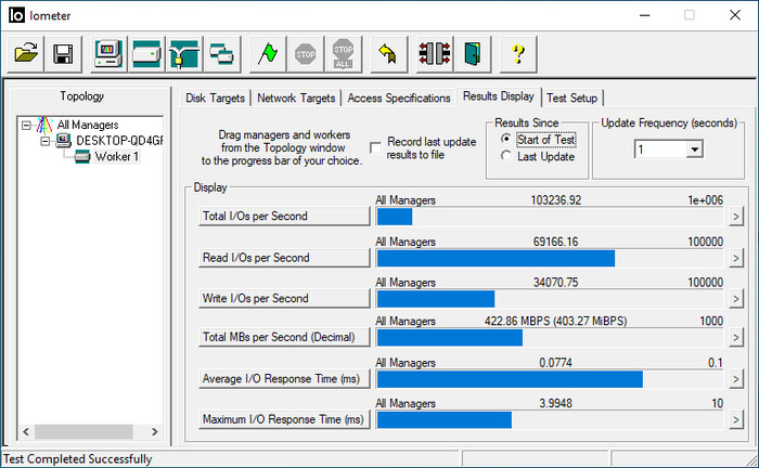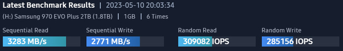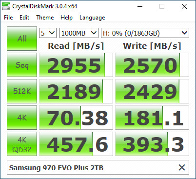 At the IOMeter test, the Samsung 970 EVO Plus 2TB gave around 103.000 points, a very good score if you ask me, for comparison the Samsung 990Pro 1TB NVME Drive gets around 143.000.