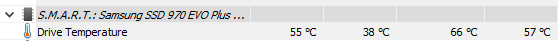 How about the running temperatures of the drive? With the HWInfo64 software, we saw temperatures from 55 to 66 Celsius (with a passive motherboard heatsink installed).