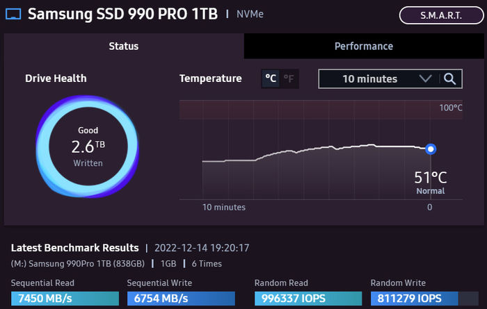 The Samsung Magician v7.0 offers a quick look of the drive's performance.
