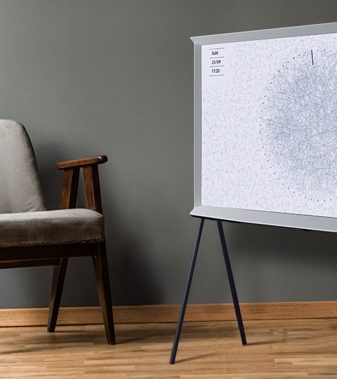 The 2019 Serif TV comes with QLED technology. Ambient Mode, a feature in Samsung’s QLED lineup, provides information, such as news headlines and weather updates, the ability to display imagery, and blend into any living space when the TV is turned off, was also added to enhance The Serif’s functionality.