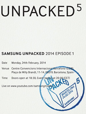 Samsung sent out invitations on Tuesday for "Samsung unPacked 5" event on February 24 at the Mobile World Congress in Barcelona.