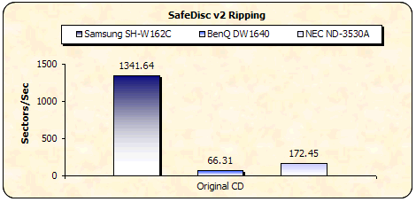 Excellent performance. Note that the Samsung SH-W162C is one of the very few drives that can successfully create working backups of SafeDisc v3.1.