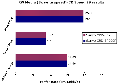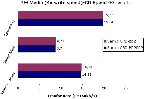 As we can see the Sanyo CRD-BP900P does not have any problems reading various media which are written at 12x. It reads them with an average 20.38x speed.