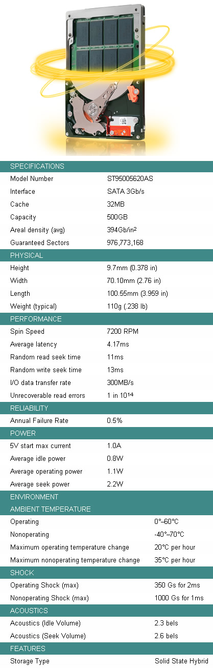 The Momentus XT drive also features Adaptive Memory - a new technology from Seagate that learns and optimizes the drive's performance to each user by moving frequently used information into the flash memory for faster access. The Momentus XT solid state hybrid drive boots up to 100 percent faster than traditional 5400RPM drives, the mainstream spin speed for laptop PCs, Seagate claims.