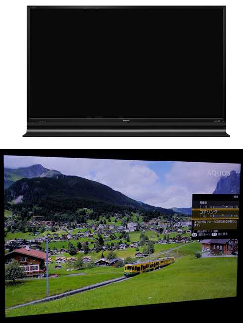 The ICC 4K LCD TV 60" prototype integrates the Integrated Cognitive Creation (ICC) visual creation technology developed by I-cubed Research Center Inc, with large-screen, high-resolution LCD technology nurtured in the development of Sharp AQUOS TVs. This involves not merely enhancing the image quality in video signal processing. Rather than that, a new signal processing technology combined with panel control technology reproduce the "cognitive" process, by which "the human brain interprets light stimuli as natural scenery or an object using a TV video display to re-create the equivalent light stimuli," acording to Sharp. "Landscapes in perspective, the realistic appearance of human figures, textures, etc., are displayed on the screen with a true-to-life quality approaching that of the real world," the company says.