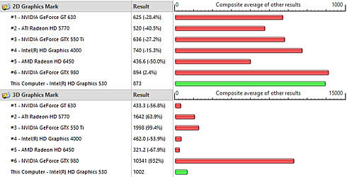 The PassMark 8 software provides an estimation of the chip's graphics "power". You really shouldn't expect any serious performance from an integrated GPU. It seems that HD 530 is more powerful than an Nvidia GT630 and is also a a lot faster than the Intel HD 4000: