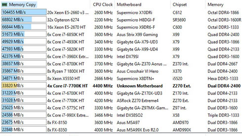 Below you see memory performance of the system using the AIDA64 Extreme benchmark. The results are very encouraging compared to other systems:
