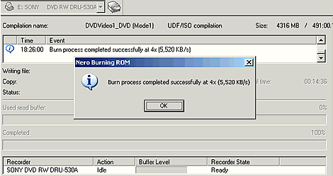 recording under CDSpeed using a Mitsubishi Chemicals 4x DVD-RW media. The drive