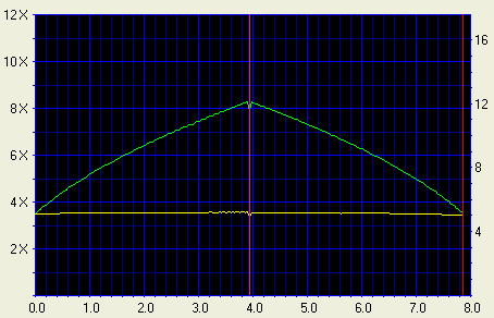 This is a single sided, single layer DVD-ROM with a 4.7GB capacity, and its surface has an artificial scratch of dimensions varying from 0.4 to 3.0 mm. The following transfer rate picture comes from the CDVD Benchmark v1.21 transfer rate test.