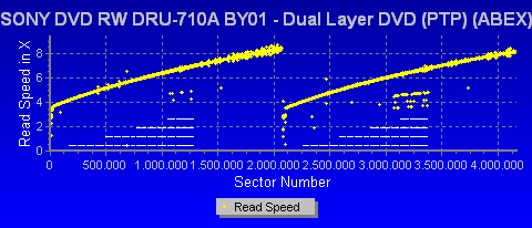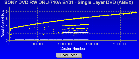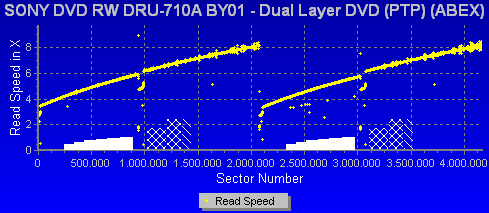 Despite the rather perculiar speed deviations during the first part of the fingerprint defects, the Sony drive read the contents of the disc, again without errors.