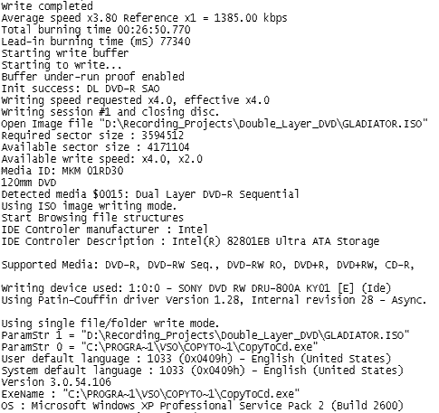 We burned two DVD+R DL discs with DVD-Video content. The source disc was "Gladiator Movie - Special Edition" disc1 with a total size of 6.86GB. First, we transferred the movie to the hard disc with DVD Decrypter in ISO format (single file). Afterwards, we used CopyToDVD, latest available version by the time of the review. After choosing the "GLADIATOR.ISO" image we selected the LiteON SOHW-1673S recorder.