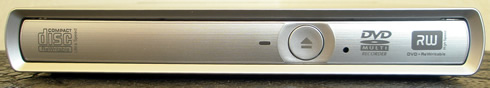 We received the black version of the drive. The front panel illustrated below includes a single ejecy button, an operation led and an emergency eject pin-hole.