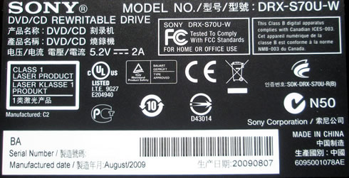 The drive was connected to the PC via a USB 2.0 interface and was identified as "SONY DVDRW DRX-S70U ".