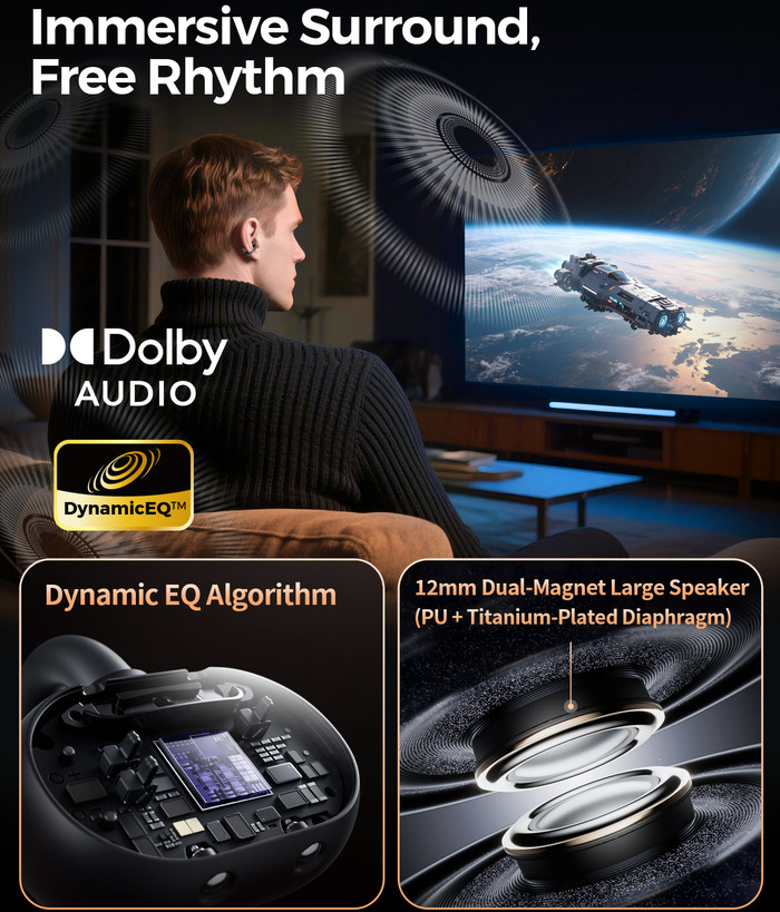 The includes 12mm Dual-Magnet Dynamic Driver (titanium PVD-coated) with a frequency response of 20Hz-40KHz, includes Bluetooth v5.4 support and SBC / AAC / LDAC BT codecs. Dolby Audio is also supported with two profiles (move/sound) that can be selected via the PeatsAudio app. There is a single-mic ENC (Environmental Noise Cancellation) for calls (AI Powered), which is the minimum for such a product, so you shouldn't expect much performance audio cancellation..