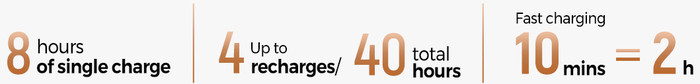 Each earbud has a 45mAh battery, and the charging case packs a 450mAh battery capacity as well. The charging time is around 1h for a full charge for the earbuds, while the charging case alone can be charged in 2.0h. There is also fast charging supported, meaning with 10minutes, users can gain up to 2 hours of playback. The built-in battery of the carrying case can be used to recharge the Clip1 product up to 4 times, increasing the total working time up to 40hours. The product with the charging case is rated for 8Hrs Playtime + 40Hrs with Charging Case (60% Volume (AAC codec, standard mode). Increasing volume or changing codec mode may decrease overall playtime.