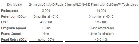 CellCare Technology is a proprietary combination of hardware and firmware working together to improve MLC flash performance and endurance throughout the life of the drive. Key endurance-extending features of this patented technology include: