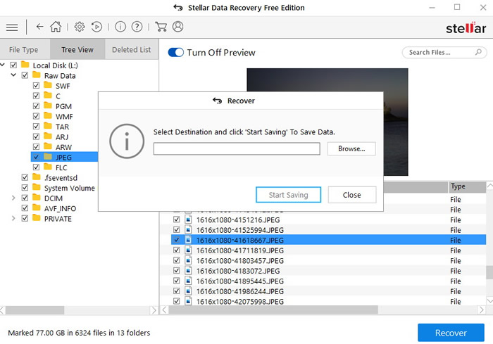 As we saw earlier, the Stellar Data Recovery will display all the file types it managed to recognize