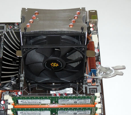 As you can see in the picture below, there is enough free space left at the rear side of the cooler, allowing you to possibly add another 92mm rotating fan there:-)