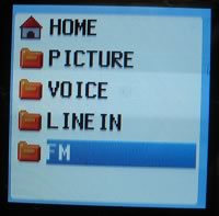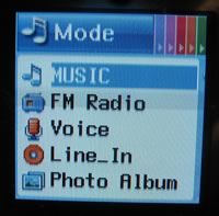 Pressing the hold/exit button, you enter the basic navigation menu. From here, you select what you want to do - listen to music, radio, record voice or from line-in, or see the photo album: