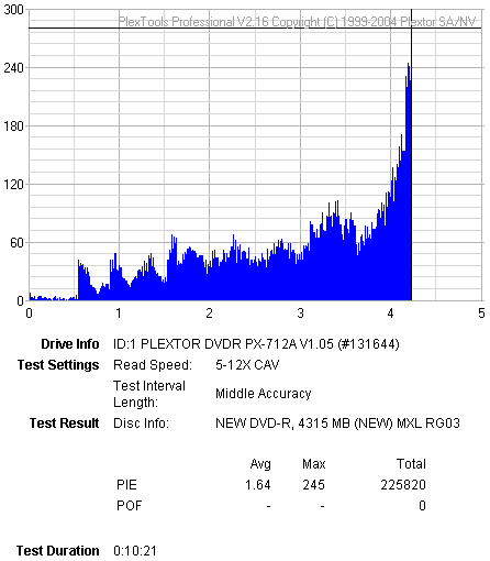 Note: PI/PIF errors only give us a quick look at the error rate of the burned media. Those scans should be taken not as the absolute criteria of the burning quality but as an indication level.