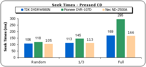 We made a copy of the previous, pressed CD in order to test the drive's behavior with a CD-R media. As in the previous test the TDK drive gave similar results with the other drives.