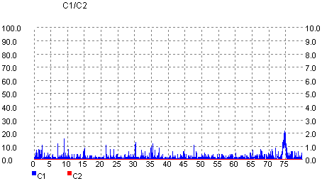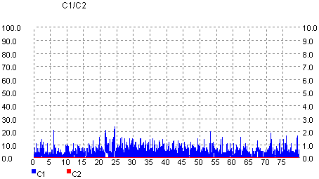 The C1 / C2 error rate was measured for the recorded discs burned during the previous writing tests (jitter). The software used was UMDoctor Pro II, and the reader was the Optorite DD0401 drive.