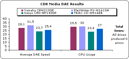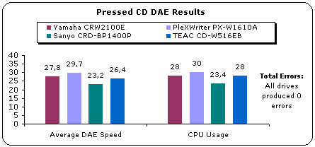 Behaving as in the pressed CD DAE test, TEAC CD-W516EB finished the DAE
