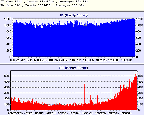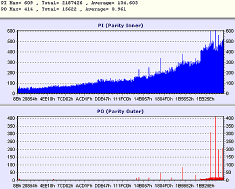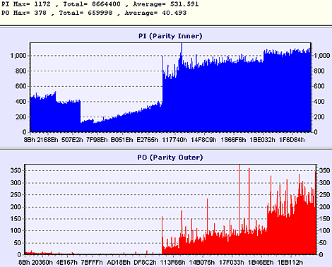 The software used for the measurements was KProbe v1.1.26, the ECC was set to 8 and the reader was LiteOn LDW-811s. The specific methodology is very dependent on the drive used as a reader, while the reliability of the PI/PO provided output is also not technically confirmed. Hence, we cannot safely come up with conclusive results, although we do make a comparison of the drive behavior when using various DVD recordable/rewritable media.