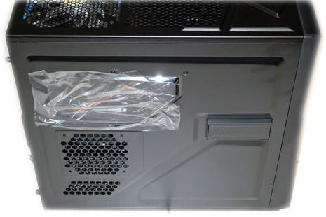 The bottom of the case also has ventilation holes underneath the power supply and extends forward far enough to allow another 120mm fan to be installed. Four rubber feet on the bottom make sure the case remains stable and they are just under half an inch tall.