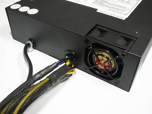 The power cord terminates on a black PCI bracket, which connects to the external AC power cable.